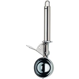 Der Eislöffel Rondo mit praktischer Auswurf-Funktion ermöglicht die Zubereitung von perfekt geformten Eiskugeln. Der Eislöffel aus Edelstahl hat einen Durchmesser von 6 cm und eine Länge von 23 cm.
