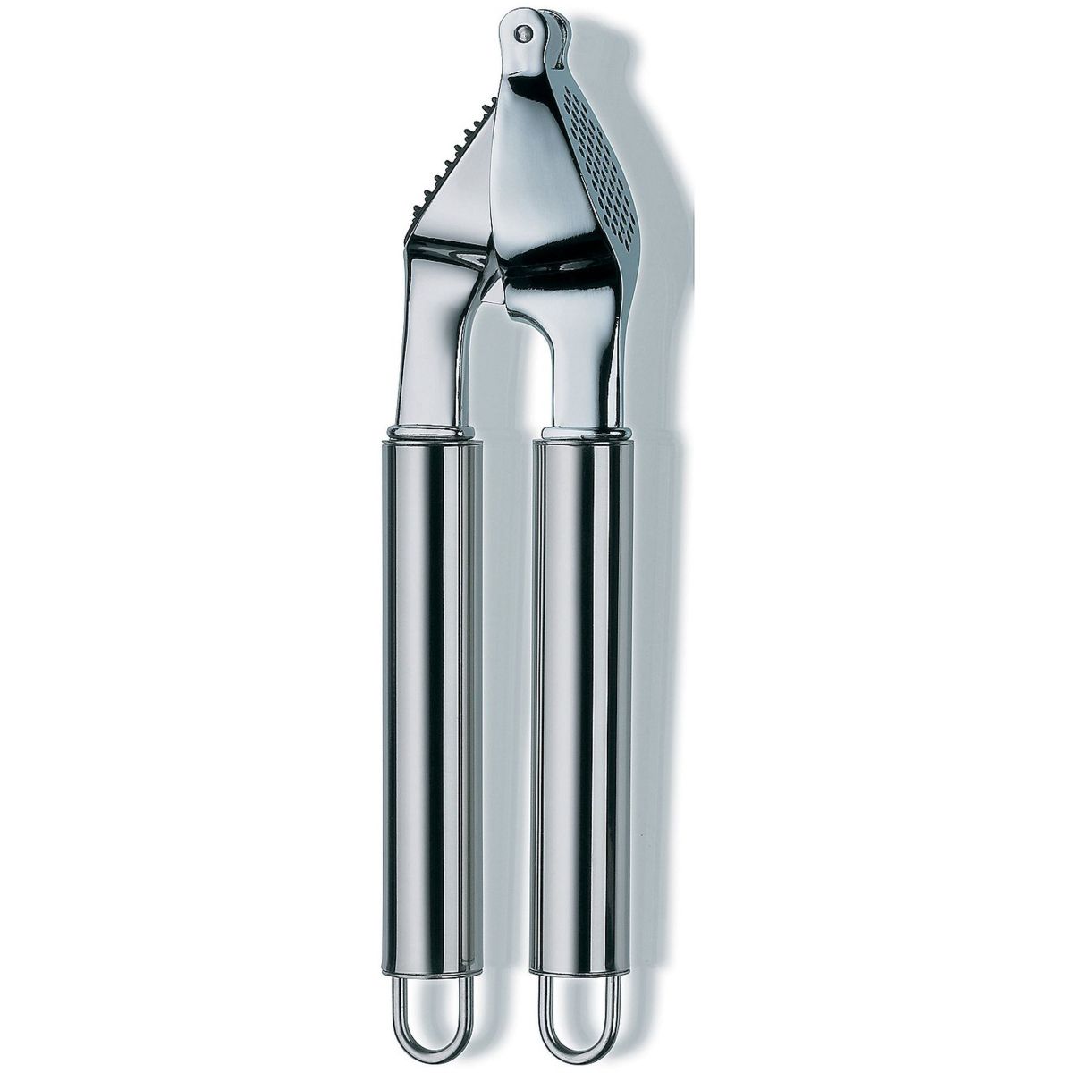 Knoblauchpresse Rondo zum schnellen und einfachen Pressen von Knoblauch. Die Knoblauchpresse ist leicht zu reinigen. Die Knoblauchpresse ist spülmaschinenfest und aus hochwertigem Edelstahl gefertigt. Mit Aufhängeschlaufen am Griff.