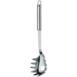 Einfaches Verteilen von Nudeln mit dem 28,5 cm langen Spaghetti-Löffel von Rondo. Der Spaghetti-Löffel ist spülmaschinenfest und aus hochwertigem Edelstahl gefertigt. Mit Aufhängeschlaufe am Griff.