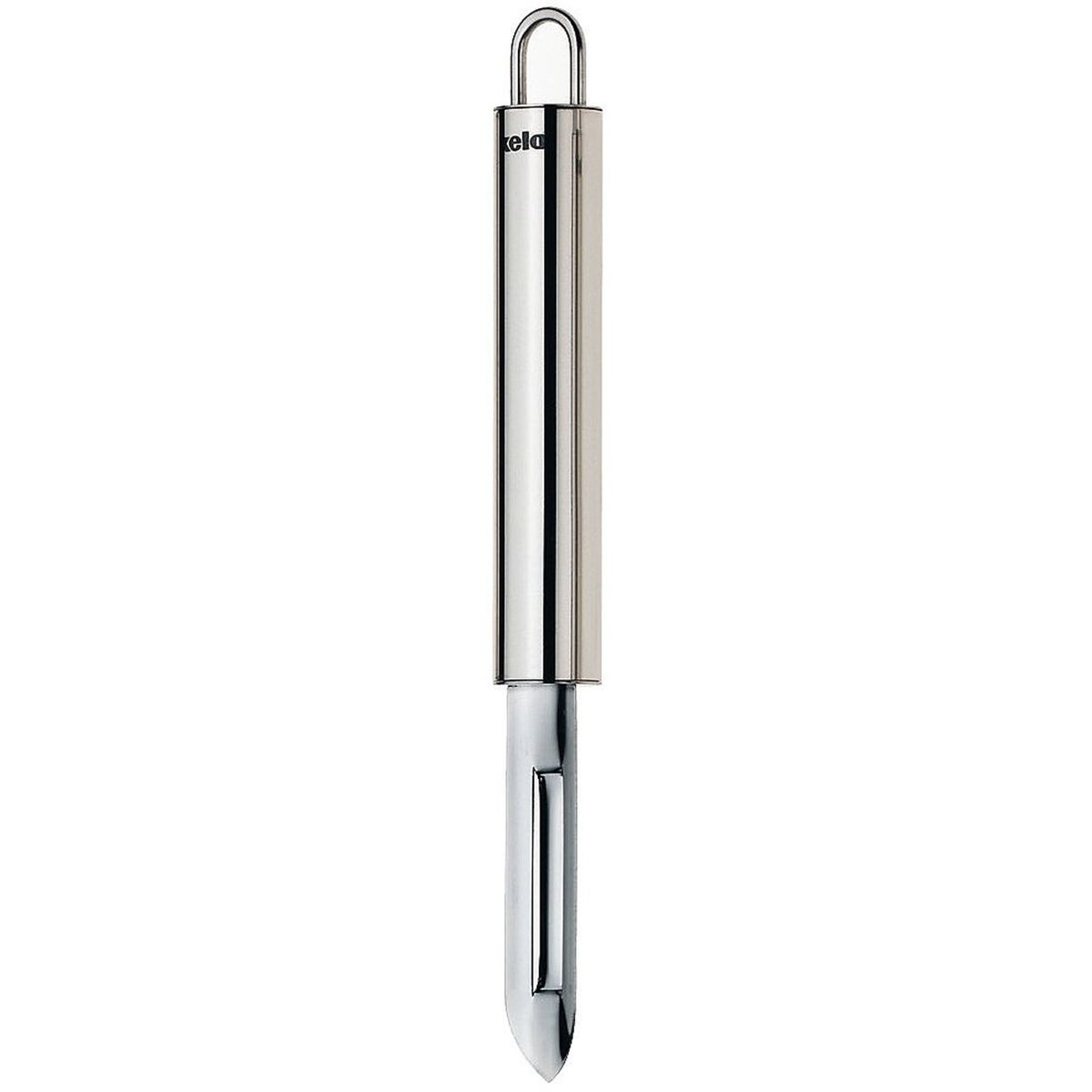 Rondo-Schäler zum Schälen von Kartoffeln, Karotten usw. Dank der Spitze lassen sich Gemüse schnell und einfach schälen. Der Schäler ist spülmaschinenfest und aus hochwertigem Edelstahl gefertigt. Mit Aufhängeschlaufe am Griff.