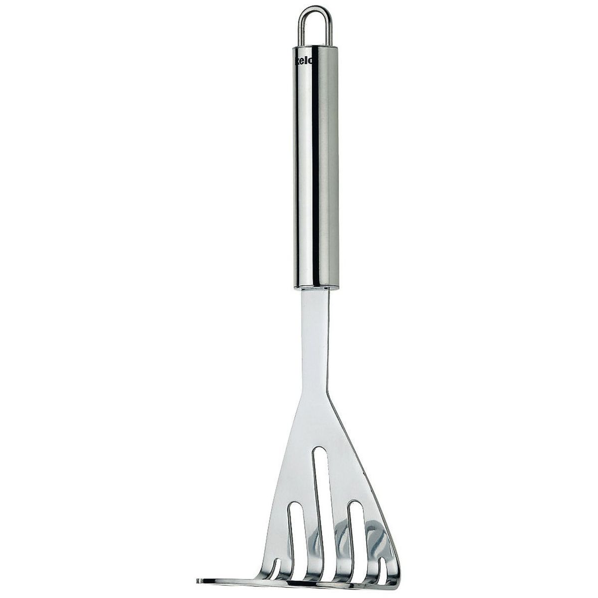 Kartoffelstampfer Rondo zum manuellen Zerstampfen von Kartoffelpüree, Karottenpüree, Selleriepüree oder Apfelmus. Der Kartoffelstampfer ist spülmaschinenfest und aus hochwertigem Edelstahl gefertigt. Mit Aufhängeschlaufe am Griff.