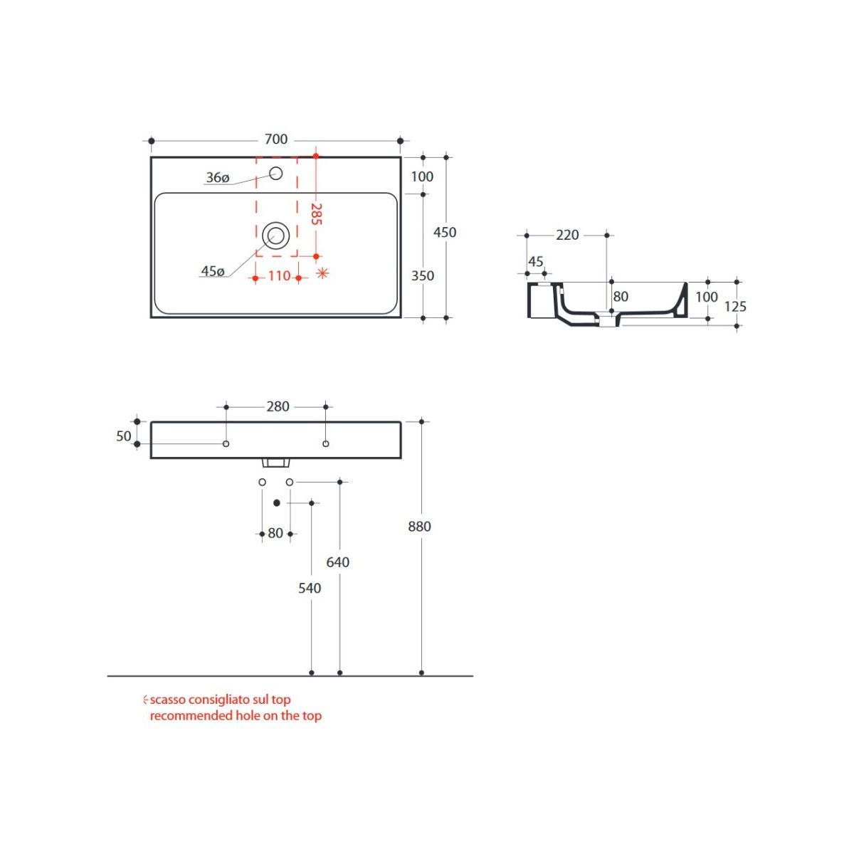 Kerasan Cento Waschbecken 70x45 cm rechteckig Klassisch-Aufsatzwaschbecken weiß 353201