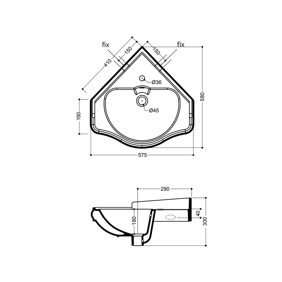 Form: eckwaschbecken