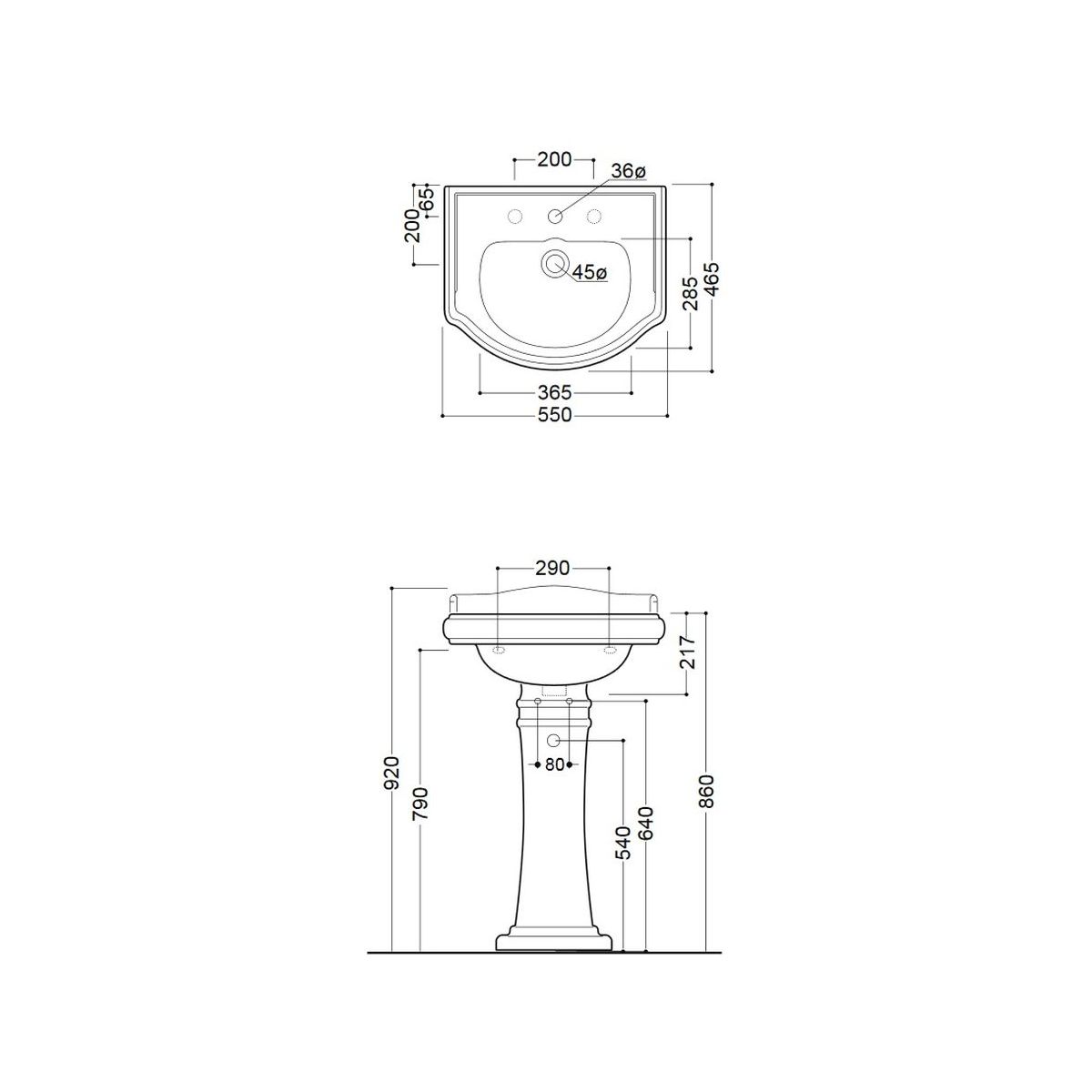 Kerasan Retro Waschbecken 55x46.5 cm halbrund Klassisch weiß 104501