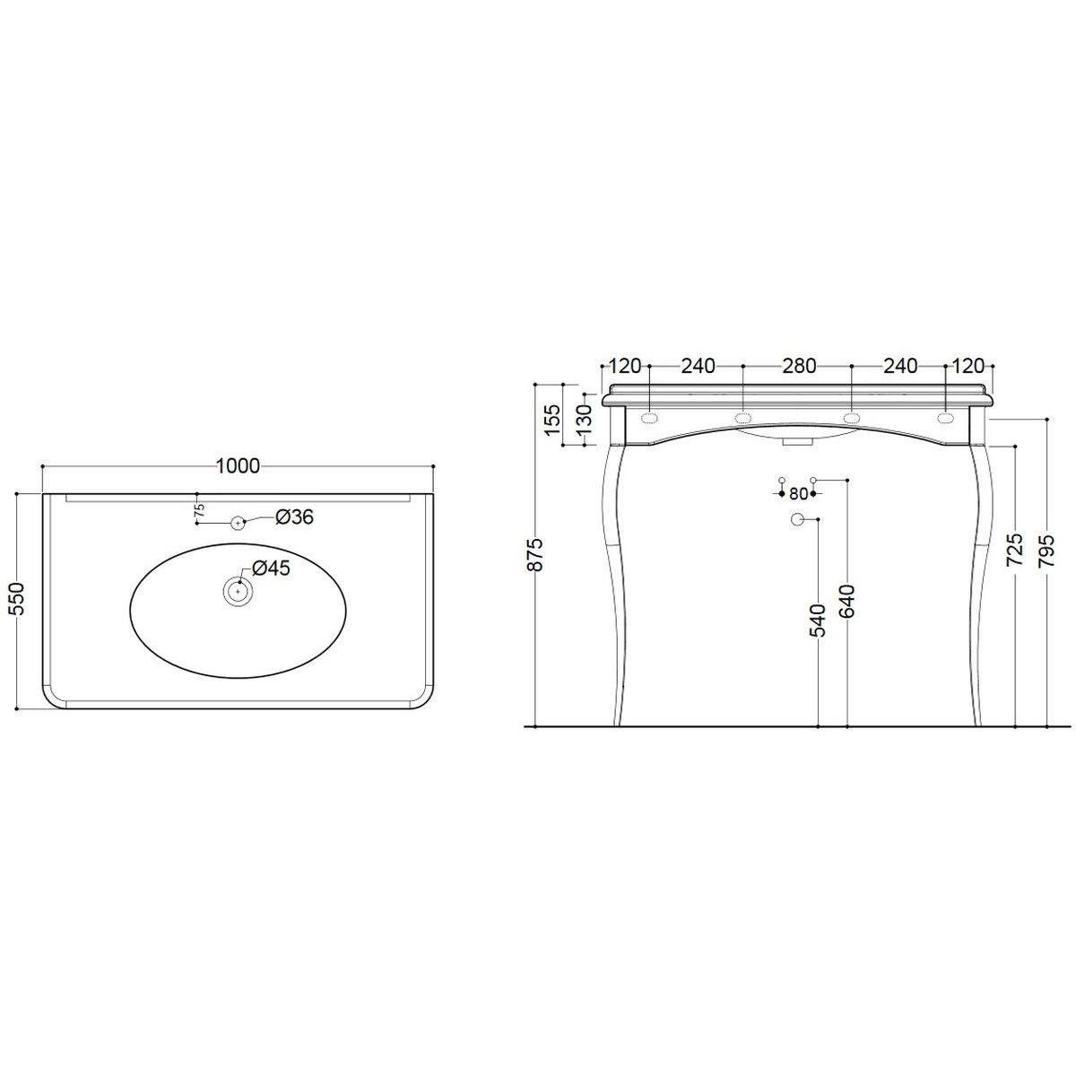 Kerasan Retro Waschbecken mit Konsole 100 cm schwarz 1049K7