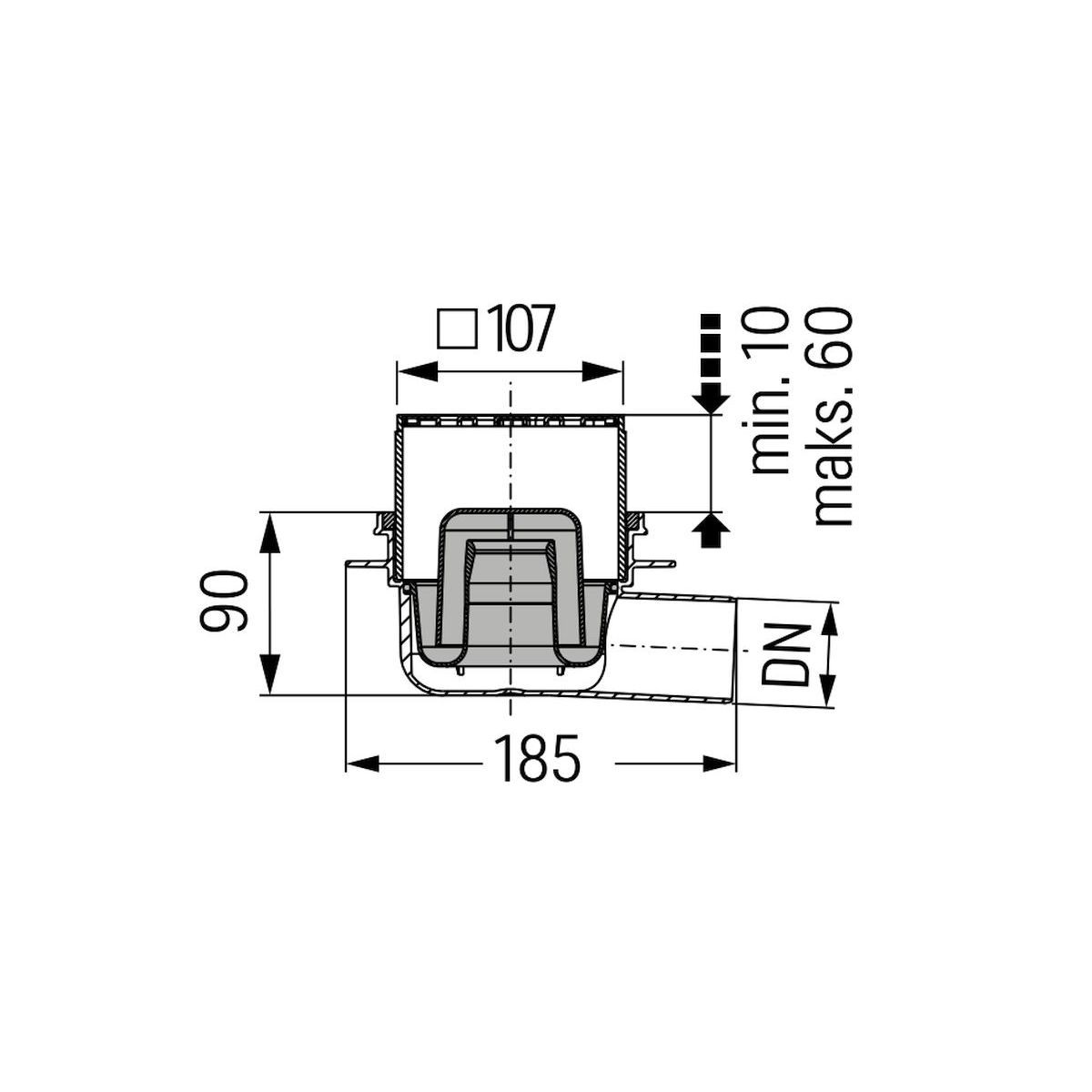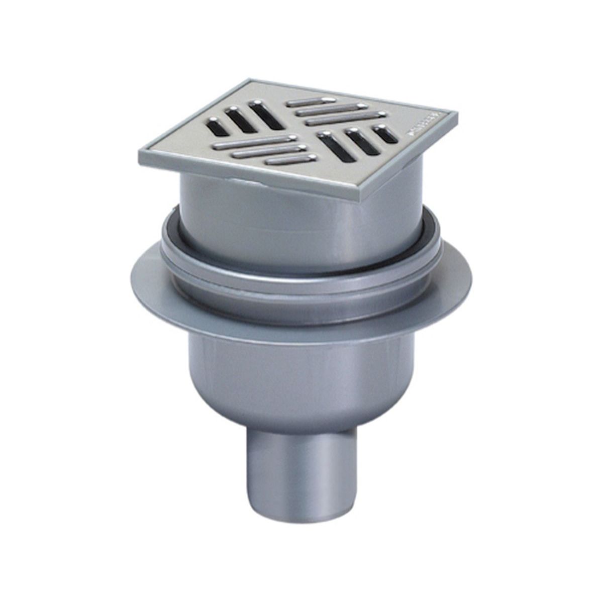 Im Lieferumfang enthalten sind ein vertikaler Abfluss, ein trockener Multistop-Siphon und ein Schmutzschutzsieb.