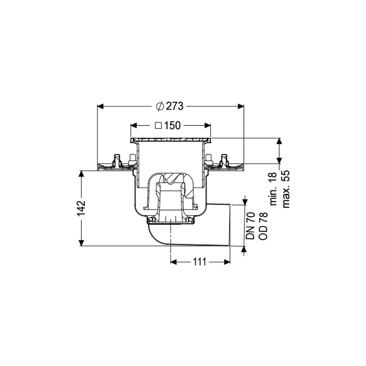 Ferrofix-Bodenablauf mit Druckdichtungsflansch DN 70, seitlich, Schlitzrost