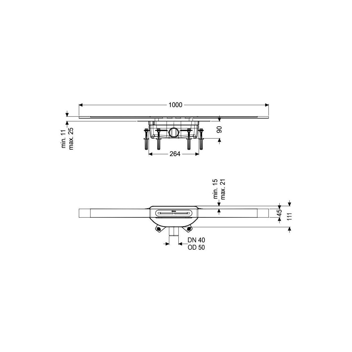 - Min. Höhe der Abdeckung: 11 mm