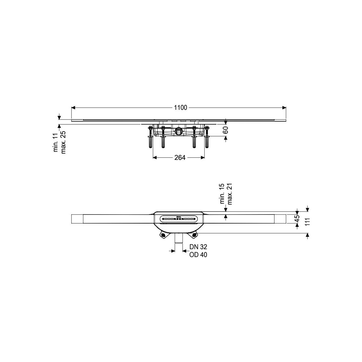 - Min. Höhe der Abdeckung: 11 mm