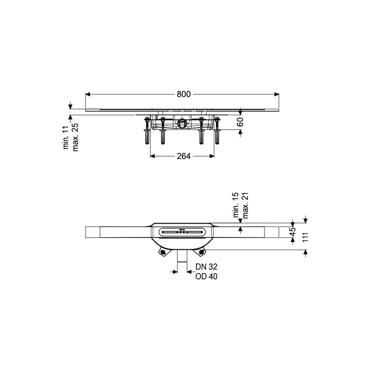 Der schmale Linearablauf Linearis Infinity für den flächenbündigen Einbau eignet sich für die lineare Entwässerung in Wohn- und Industriegebäuden. Der Körper aus PP ist mit Schall- und Schwingungsdämpfern (Stifte). Der Abfluss verfügt über einen Flansch mit Schnappverschluss und einer werkseitig montierten Abdichtungsmatte gemäß den Normen PN-EN 1253-1 und DIN 18534-1-W3-I. Das Ablaufprofil kann im Flansch mit Schnappverschluss längs und quer verschoben werden, um Bautoleranzen auszugleichen. Mit mechanischem Megastop-Siphon mit Wasserverschluss. Eine offene Ablauföffnung für Sickerwasser verhindert ein Überfluten der Dichtfläche durch Stauwasser.