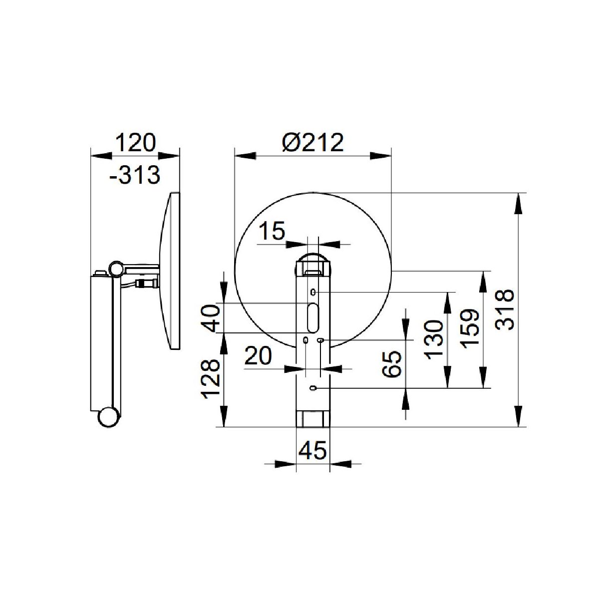 - 12-V-Netzteil im Arm der Halterung integriert