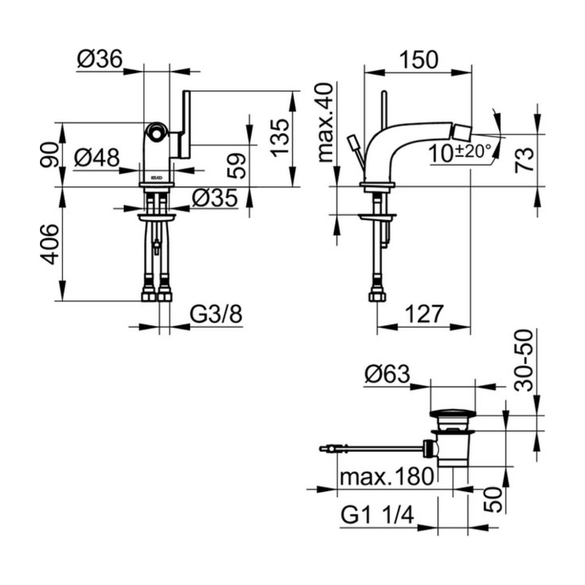 Keuco Edition 400 Bidet-Wasserhahn stehend chrom 51509010000