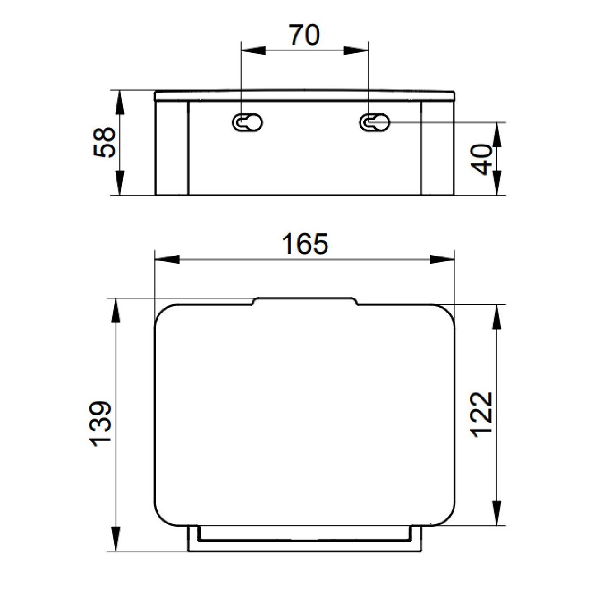 - Abmessungen: 145 x 102 x 43 mm, verchromt