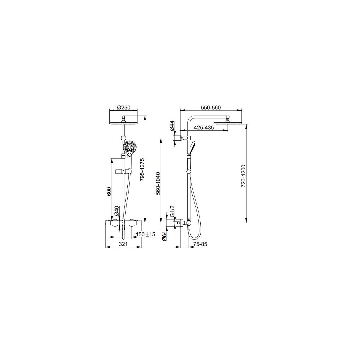 - Thermostat-Duscharmatur mit Regenduschkopf