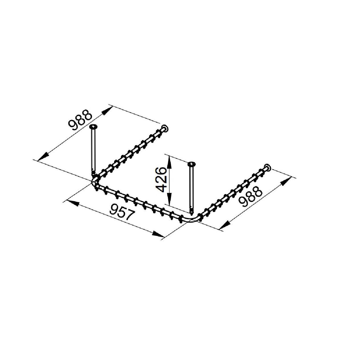 - Set mit Schienen für Duschvorhänge Für quadratische Duschwannen 1000 x 1000 mm (U-Form)