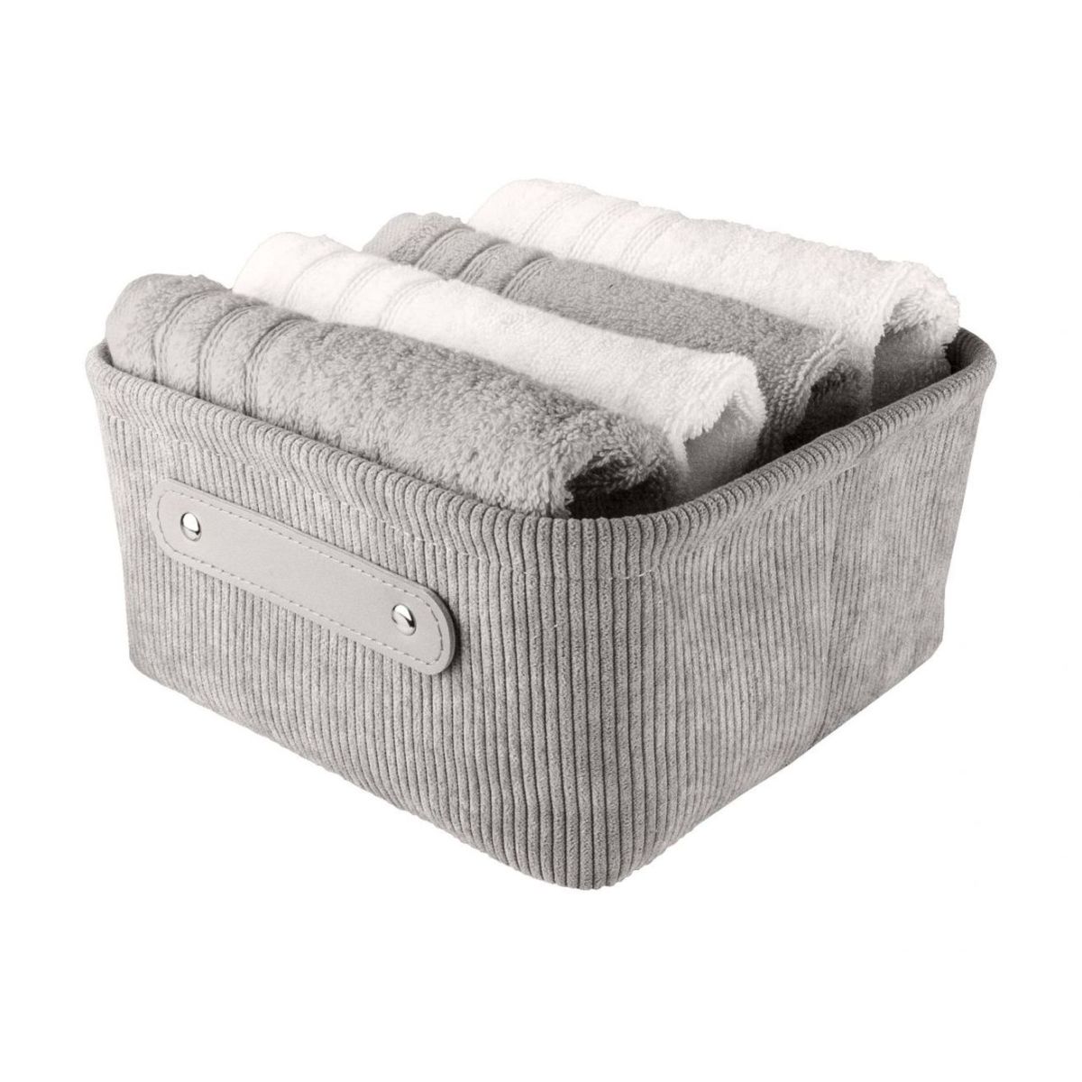 Der Aufbewahrungskorb „Bedford” von Kleine Wolke ist nicht nur ein Blickfang, sondern sorgt auch im Handumdrehen für Ordnung in Ihrem Badezimmer. Die Box im modernen Cord-Look eignet sich ideal zum Sortieren von Kosmetika, Schmuck und anderen Badutensilien. Das Material ist widerstandsfähig und langlebig.