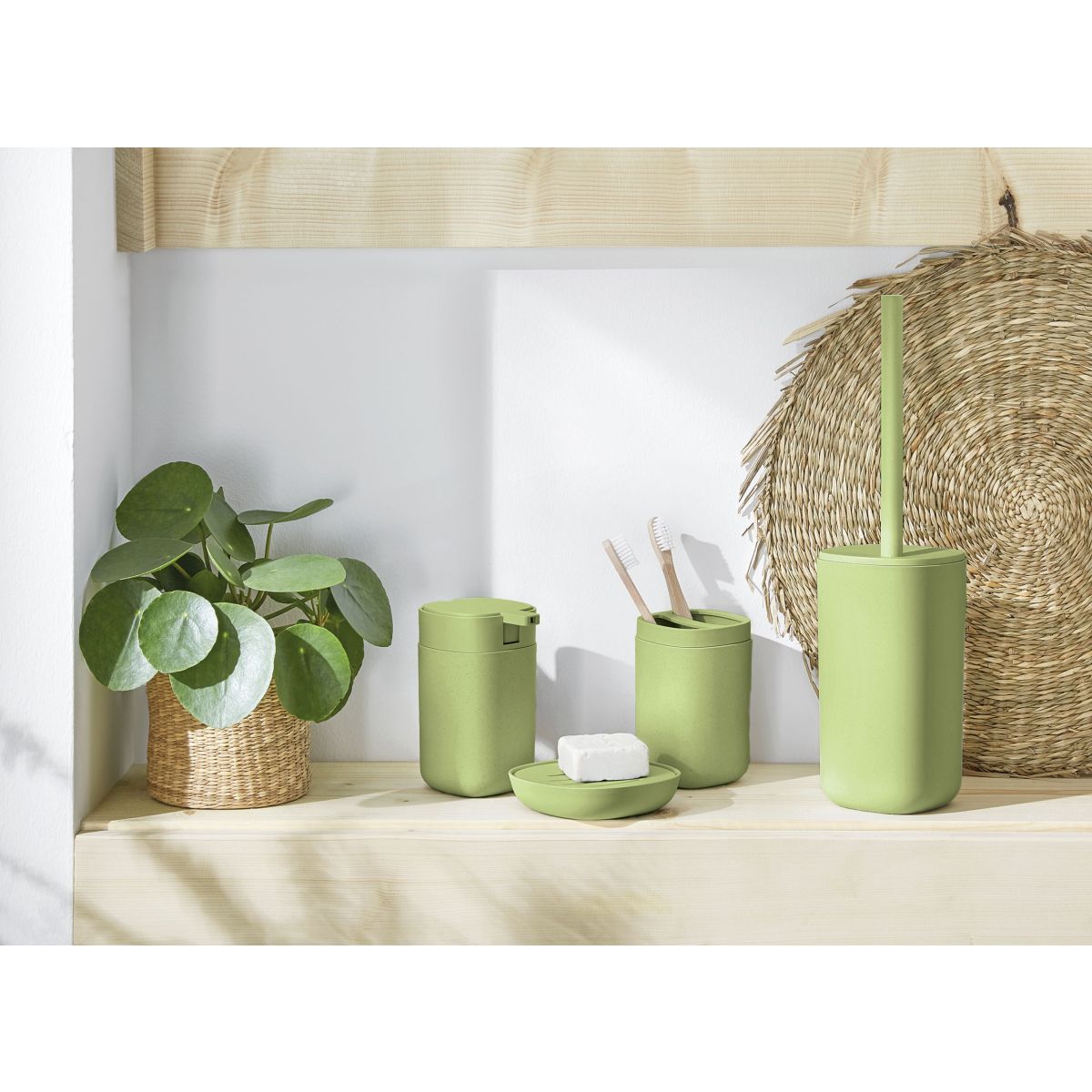 - Das Set besteht aus einem stabilen Sockel mit Deckel und einer Bürste.