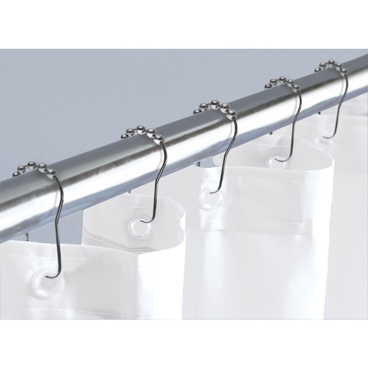 Die Rollen sind aus hochwertigem Edelstahl und einer Zinklegierung gefertigt. Das schöne Material in Kombination mit dezenten Perlen setzt einen zusätzlichen Akzent in Ihrem Badezimmer. Die Perlen ermöglichen ein reibungsloses Gleiten des Vorhangs auf der Stange.
