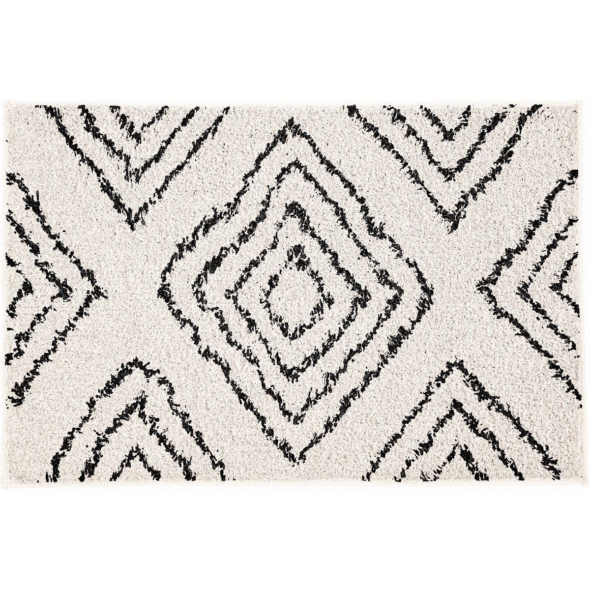 Badezimmerteppich Boho aus der Kategorie EcoLiving mit rustikalem Look, in Naturfarbe mit zarten, sich kreuzenden Linien. Hergestellt aus recycelter Baumwolle.