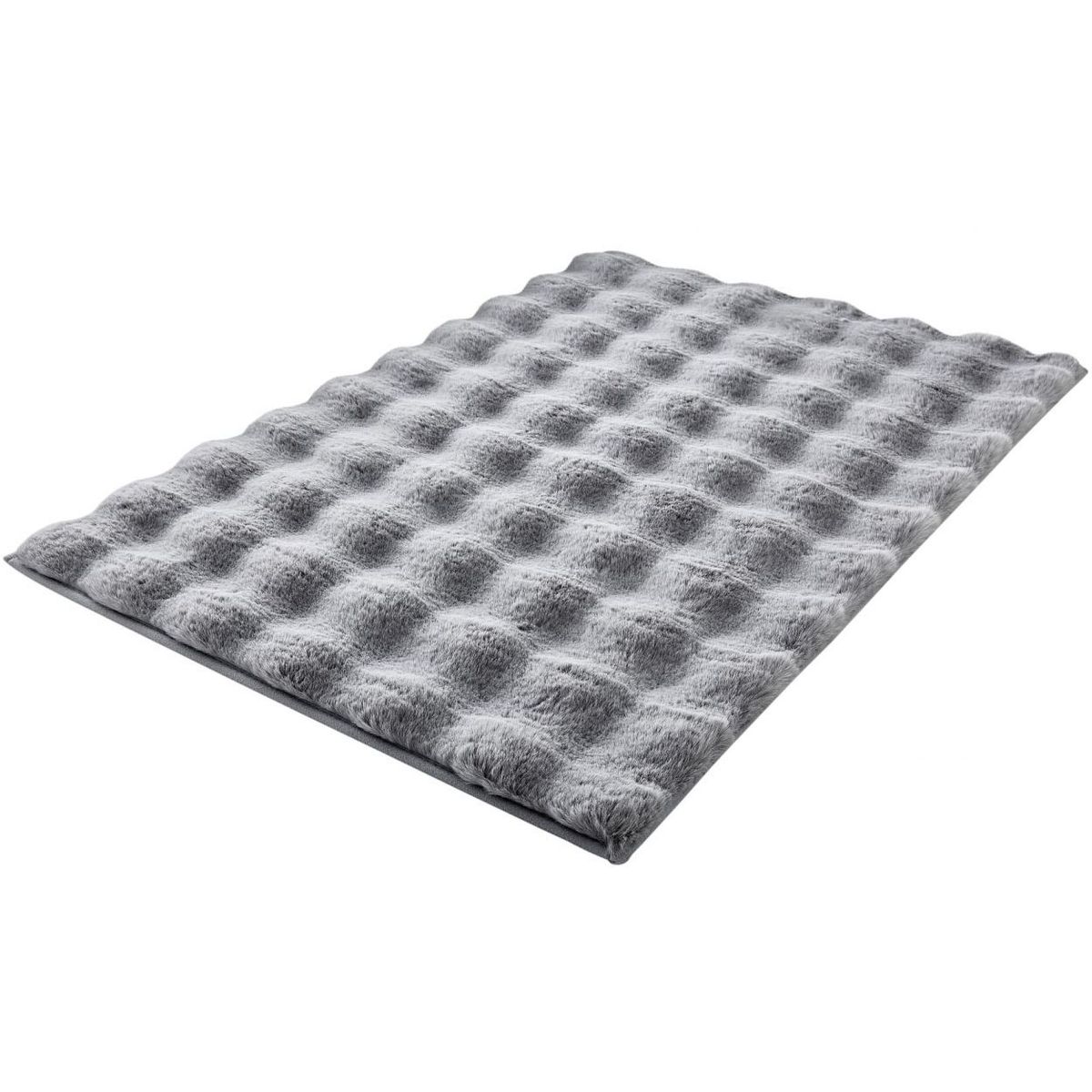Er besteht aus hochwertigem 100 % Polyester in stilvollem Silbergrau und misst 70 x 120 cm. Seine einzigartige Struktur mit hohen und niedrigen Fasern ist nicht nur ein Blickfang, sondern sorgt auch für ein unglaublich weiches Gefühl unter den Füßen. Die 12 und 28 mm hohen Fasern bieten eine angenehme Textur und zusätzlichen Komfort. Eine spezielle TPE-Beschichtung auf der Unterseite des Teppichs verhindert ein Verrutschen auf glatten Oberflächen und macht ihn ideal für das Badezimmer. Der CLOUD-Teppich kann im Schonwaschgang bei 40 °C gewaschen werden. Er ist außerdem nach dem OEKO-TEX® STANDARD 100 zertifiziert, was bedeutet, dass er frei von Schadstoffen und umweltfreundlich ist.