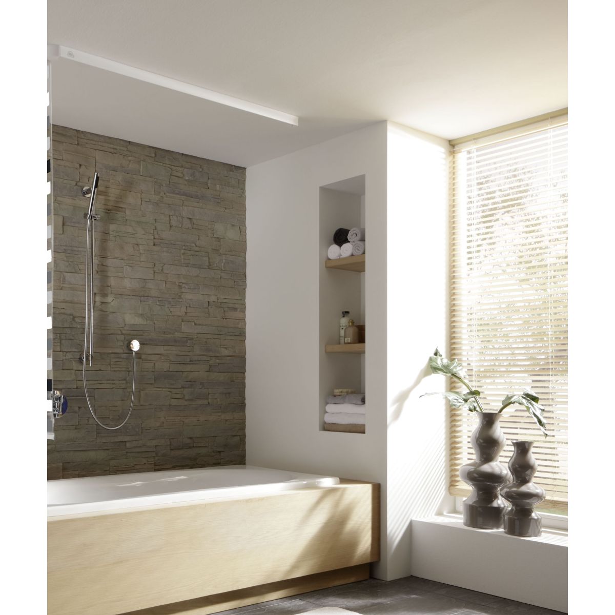 Die leere Kassette 132 cm für Kleine Wolke-Rollos ist ein Grundelement, das an der Decke über der Badewanne oder Dusche montiert wird – Element A.