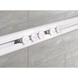 Enthält 16 Schieber, die für einen Duschvorhang bis zu einer Breite von 240 cm ausreichen