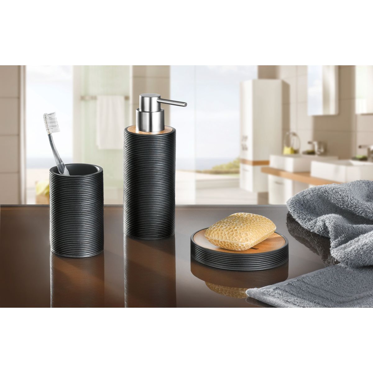 - moderne Accessoire-Serie mit geriffelter Struktur