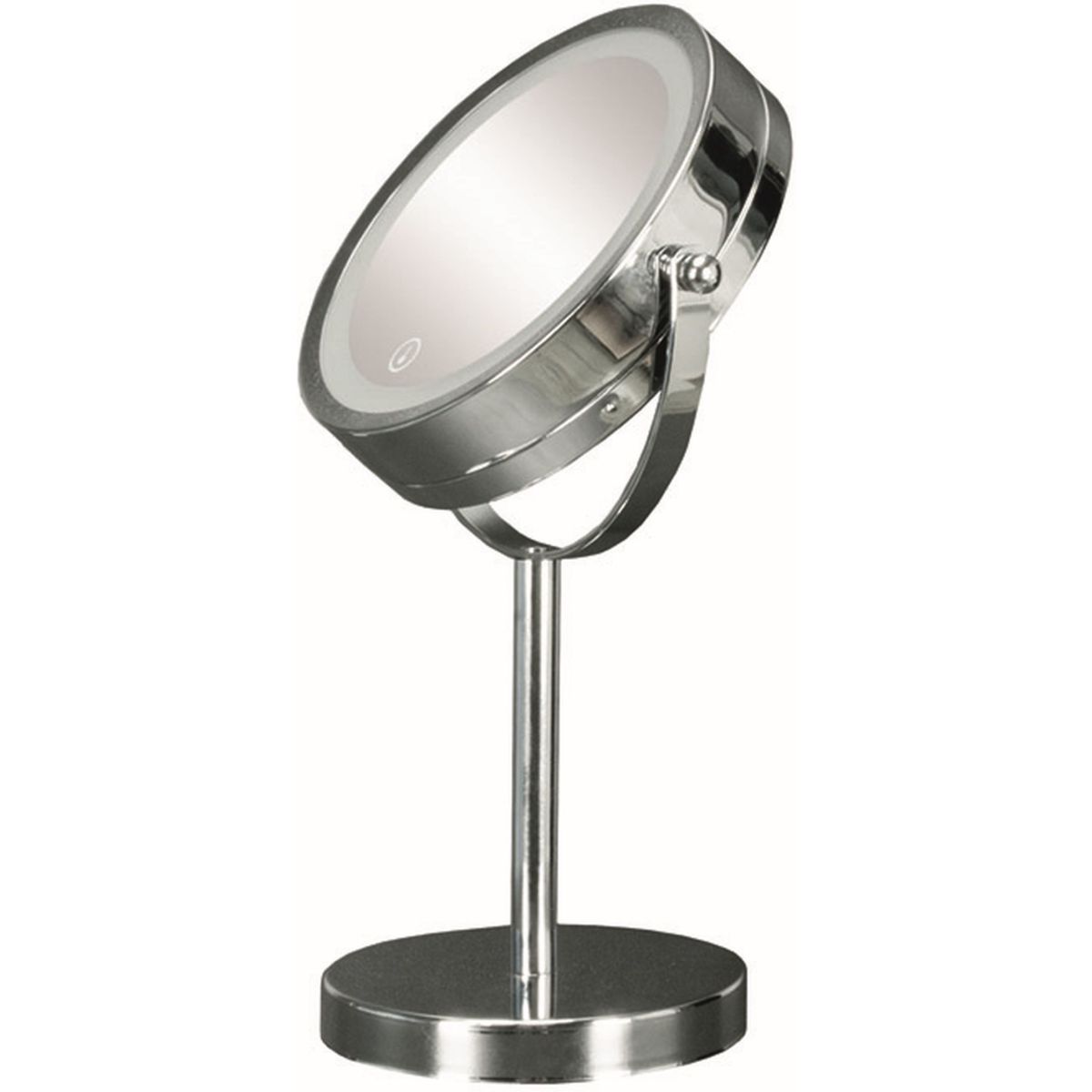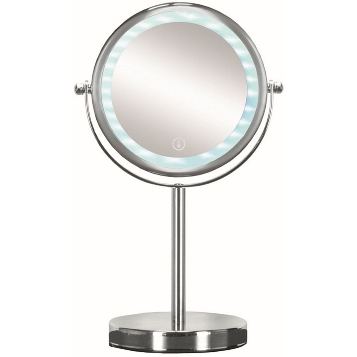 Der elegante LED-Kosmetikspiegel Bright Mirror von Kleine Wolke mit Chromfuß ist ein Muss in jedem Badezimmer. Touch-Schalter.
