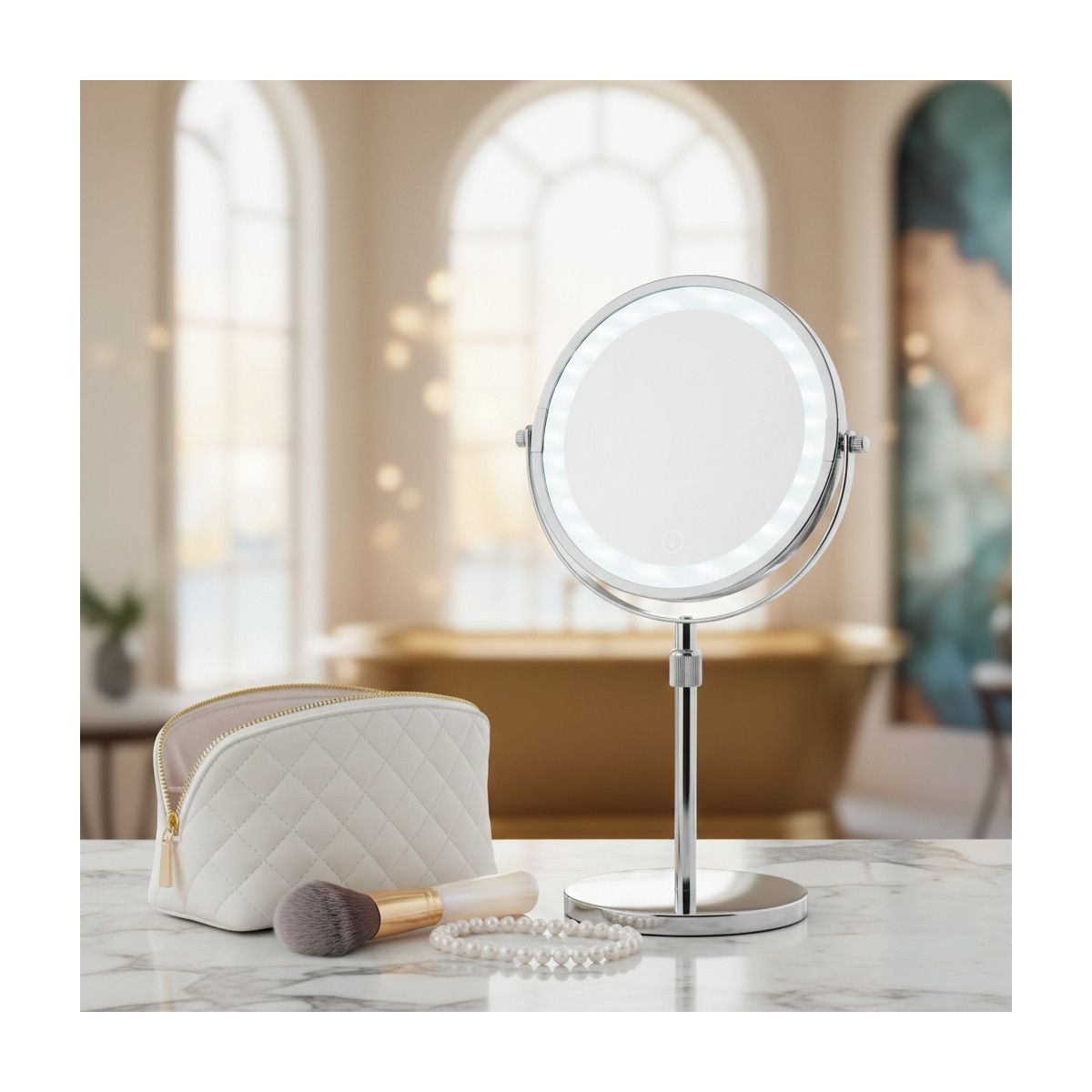 Level Mirror ist ein moderner LED-Kosmetikspiegel der Marke Kleine Wolke, der in zwei eleganten Farbvarianten erhältlich ist: Silber (Chrom) und Schwarz (matt). Er eignet sich ideal für die tägliche Pflege und das Schminken und verbindet stilvolles Design mit praktischen Funktionen.
