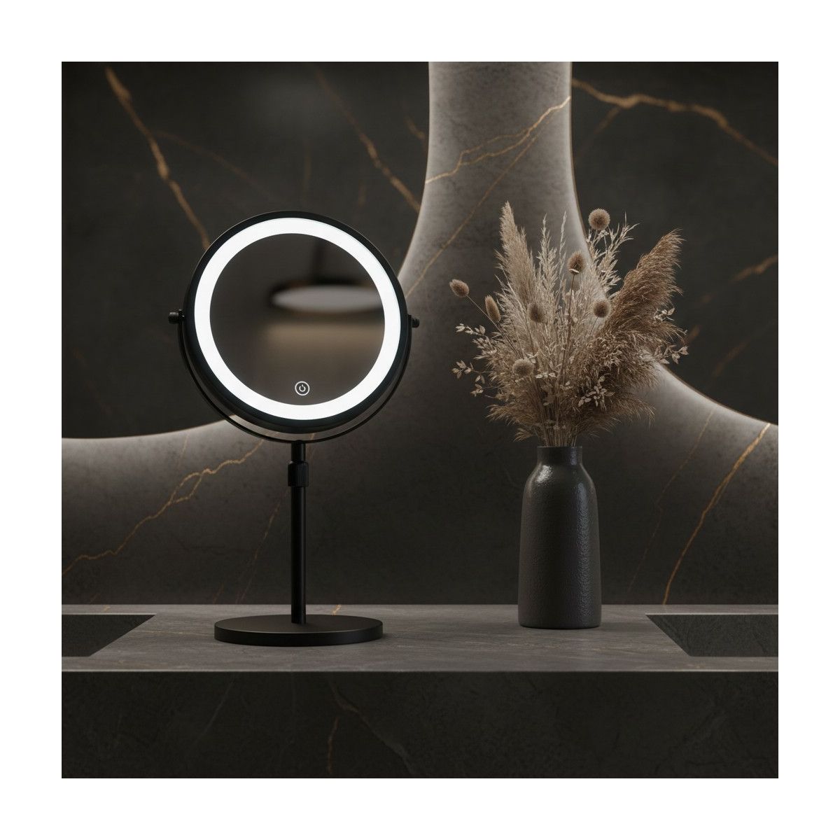 Level Mirror ist ein moderner LED-Kosmetikspiegel der Marke Kleine Wolke, der in zwei eleganten Farbvarianten erhältlich ist: Silber (Chrom) und Schwarz (matt). Er eignet sich ideal für die tägliche Pflege und das Schminken und verbindet stilvolles Design mit praktischen Funktionen.