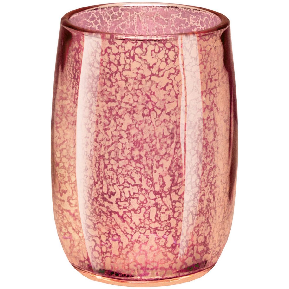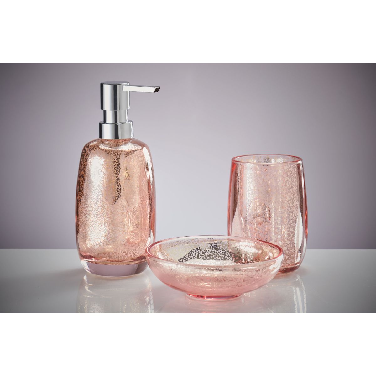 Der elegante Zahnbürstenbecher aus korallenglänzendem Glas mit goldenen Akzenten ist ein echter Blickfang. Die zart transparente Struktur des Behälters lässt seinen Inhalt erkennen. Der Becher besteht aus robustem, dickem Glas und wiegt über 0,5 kg.