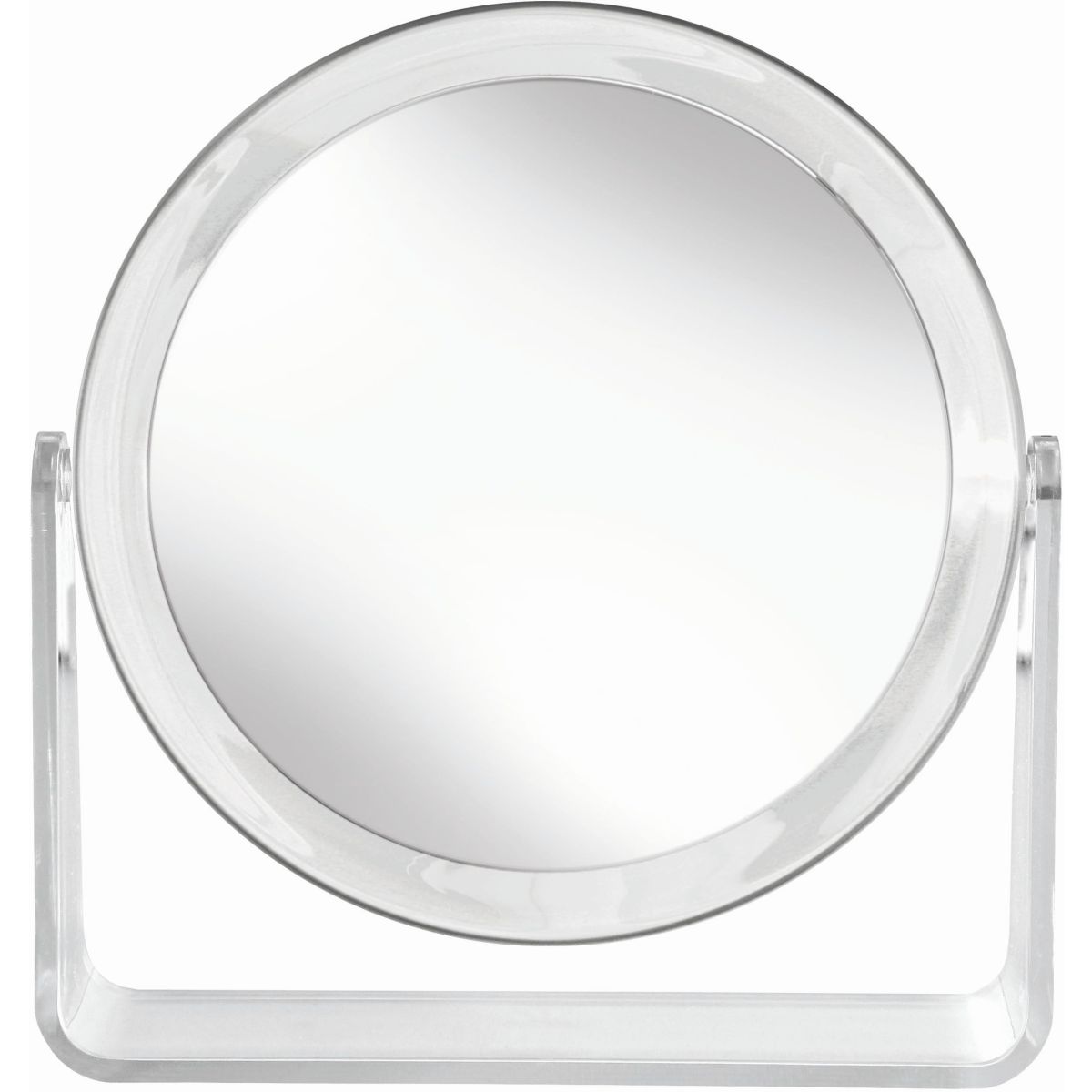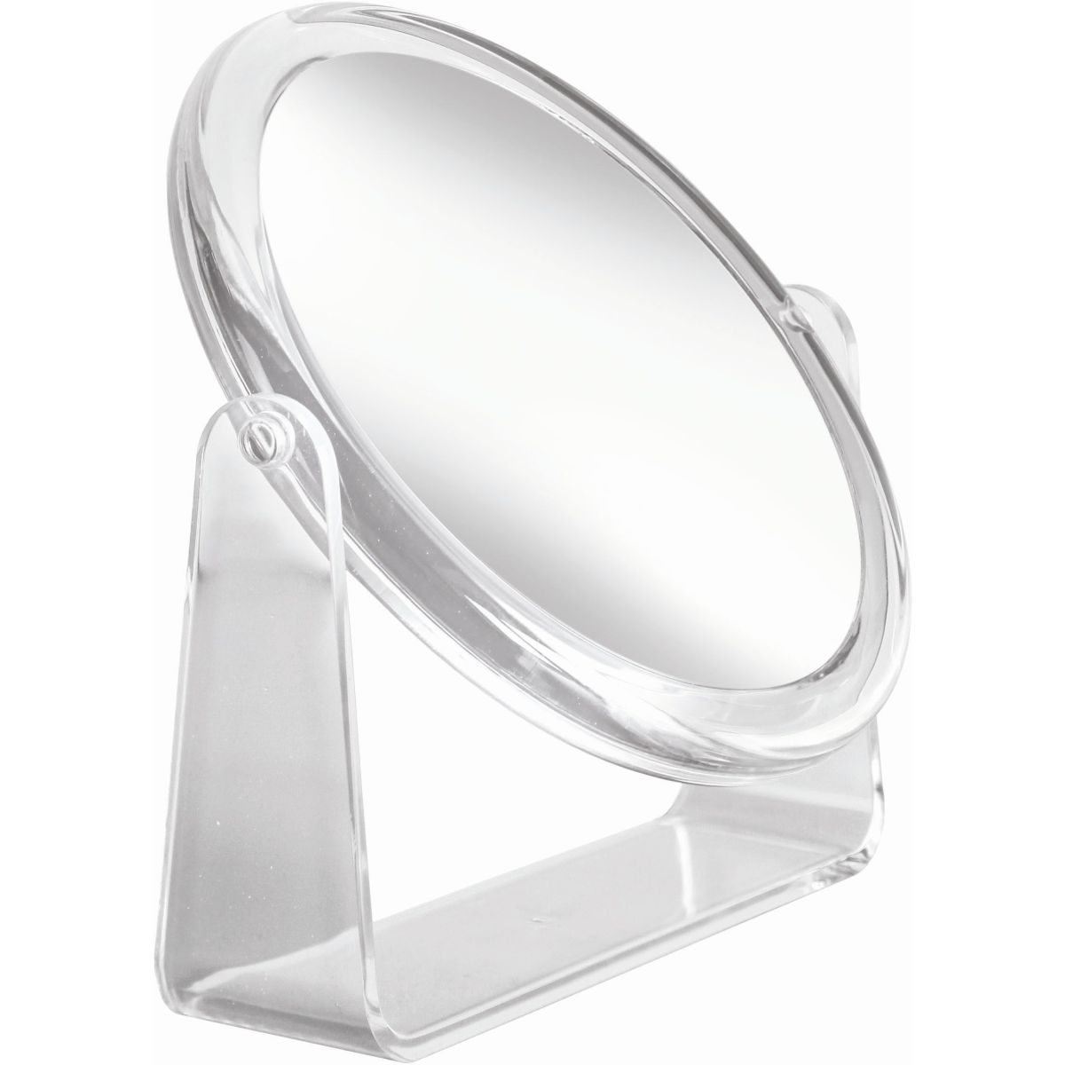 Der moderne Standspiegel „Clear Mirror” der Marke Kleine Wolke besticht durch seine Funktionalität und sein zeitloses, elegantes Design. Der Spiegel wird zu einem unverzichtbaren Blickfang auf Ihrem Schminktisch oder Ihrer Kommode. Das runde Glas ist in einen transparenten Rahmen aus Polystyrol eingelassen und scheint darin zu schweben. Der Spiegel hat zwei Seiten: eine aus normalem Spiegelglas und eine mit zehnfacher Vergrößerung – ideal für die morgendliche Pflege. Je nach Bedarf kann die Spiegelplatte im gewünschten Winkel geneigt und leicht an Ihre Bedürfnisse und z. B. an optimale Lichtverhältnisse angepasst werden.