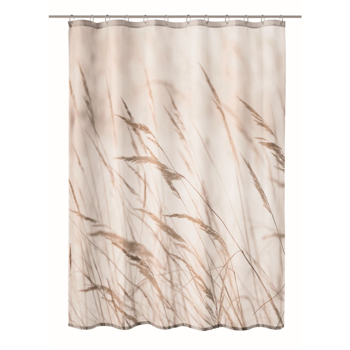 Der schöne und dezente Duschvorhang Sylt von Kleine Wolke, 180 x 200 cm. Das zarte Grasmotiv in Beigetönen verleiht dem Raum Leichtigkeit, und der Stoff des Vorhangs schützt vor Spritzwasser beim Duschen.