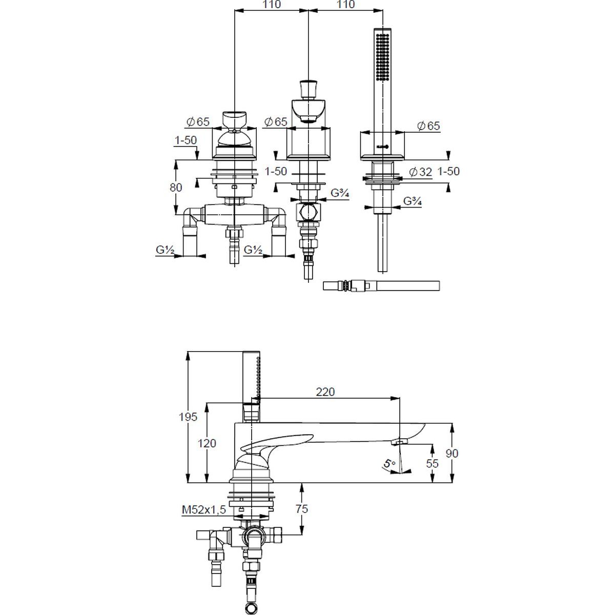 Dreiteilige Badewannen- und Duscharmatur. Das Produkt ist für die Montage am Badewannenrand vorgesehen. Der Auslauf ist mit einem Perlator S-Poiner M 24 x 1 ausgestattet, mit dem sich der Winkel des Wasserstrahls regulieren lässt. Der automatische Umsteller am Auslauf leitet den Wasserstrahl beim Schließen der Armatur automatisch zum Auslauf um, auch wenn Sie zuvor die Brausfunktion genutzt haben.