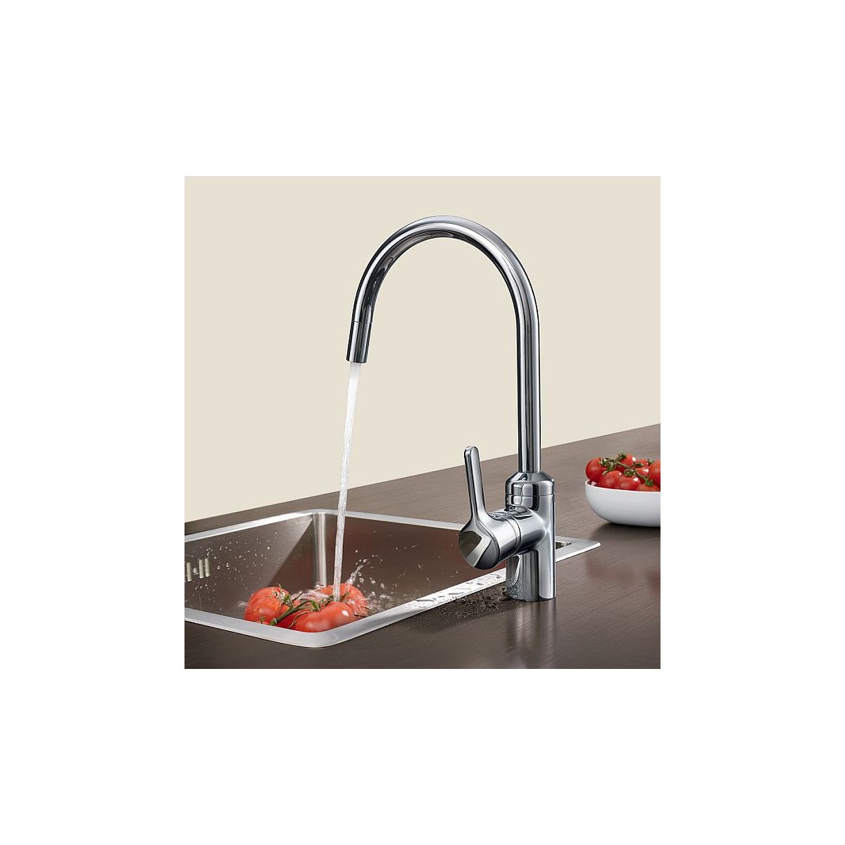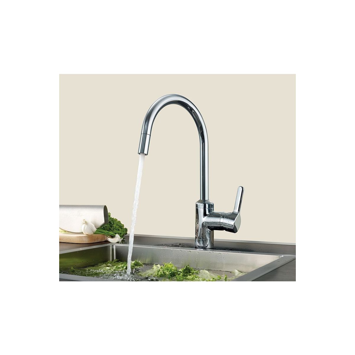 Eine einfache und zugleich funktionale Küchenarmatur. Das Produkt ist mit einem schwenkbaren, ausziehbaren Auslauf ausgestattet. Diese Lösung erleichtert die täglichen Küchenarbeiten. Darüber hinaus hilft diese Armatur, die Wasserrechnung zu senken. Dies ist dem Perlator zu verdanken, der den Wasserverbrauch um mindestens 40 % reduziert.