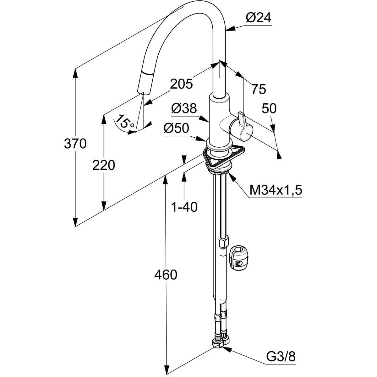 - flexible Druckschläuche G 3/8