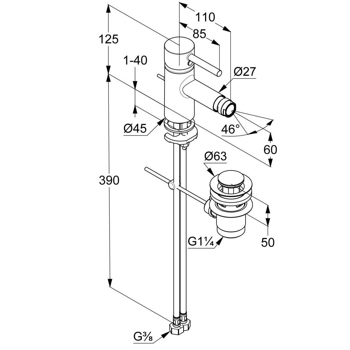 - Einhebel-Bidetarmatur DN 15