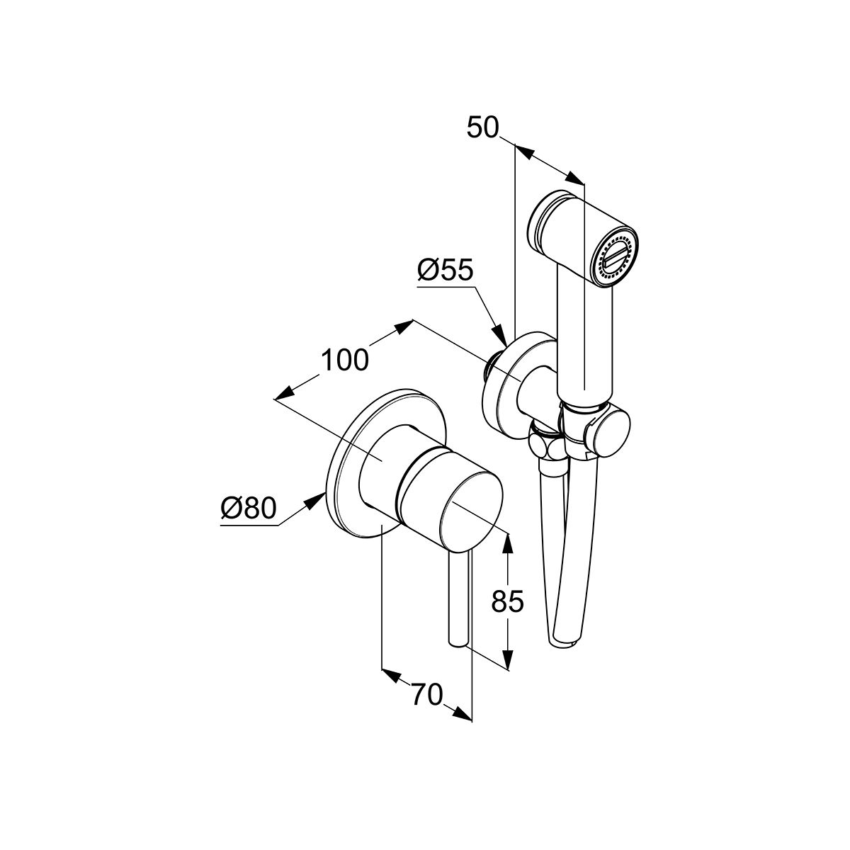 - Duschgriff mit Druckknopf zum Öffnen des Wasserflusses (Bidetta-Griff)