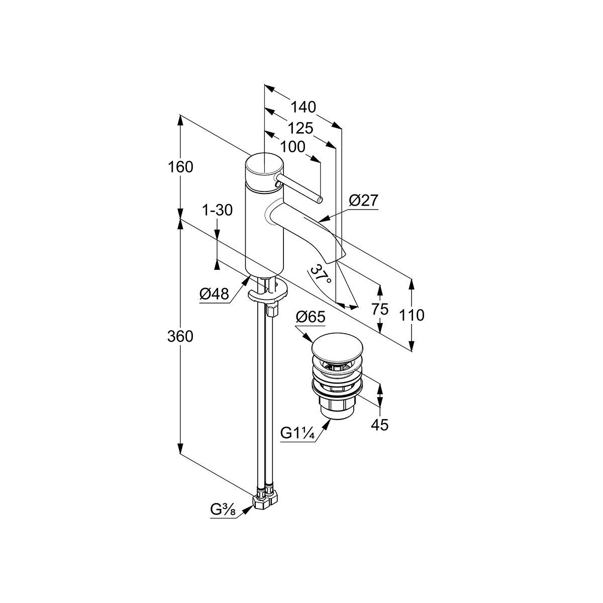 Kludi Bozz Waschtischarmatur Stehend schwarz 382663976