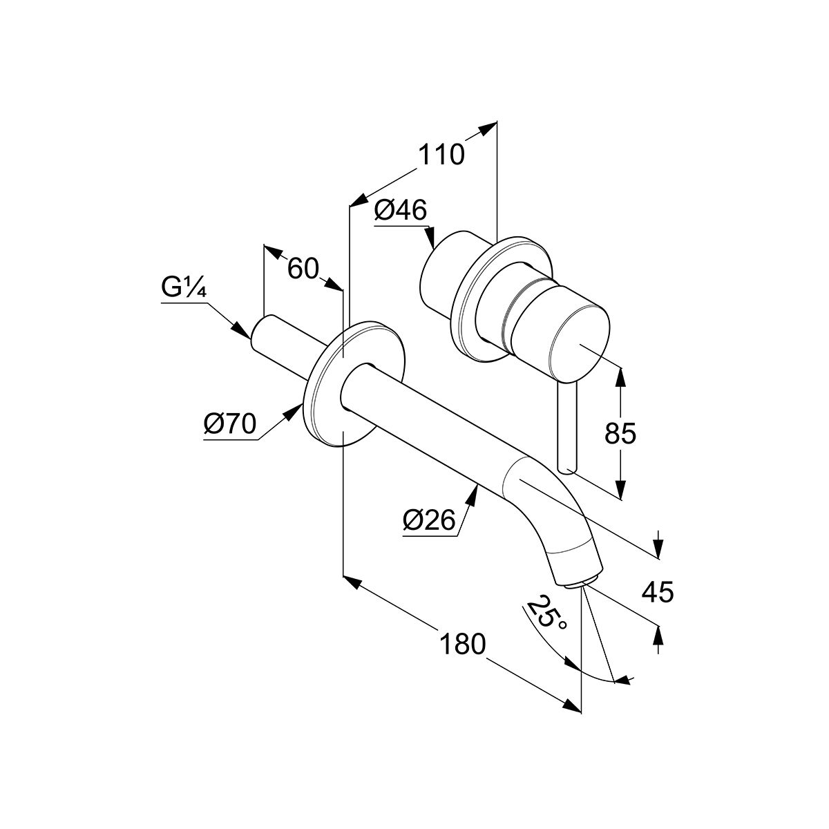 Eine einfache, elegante Wand-Waschtischarmatur mit Unterputzmontage. Dank ihrer stromlinienförmigen Form und ihrer unkomplizierten Konstruktion lässt sich die Armatur schnell und einfach reinigen. Der im Set enthaltene Auslauf ermöglicht die Einstellung des Wasserstrahlwinkels, und der darin installierte S-Pointer Eco-Strahlregler sorgt für einen geringeren Wasserverbrauch.