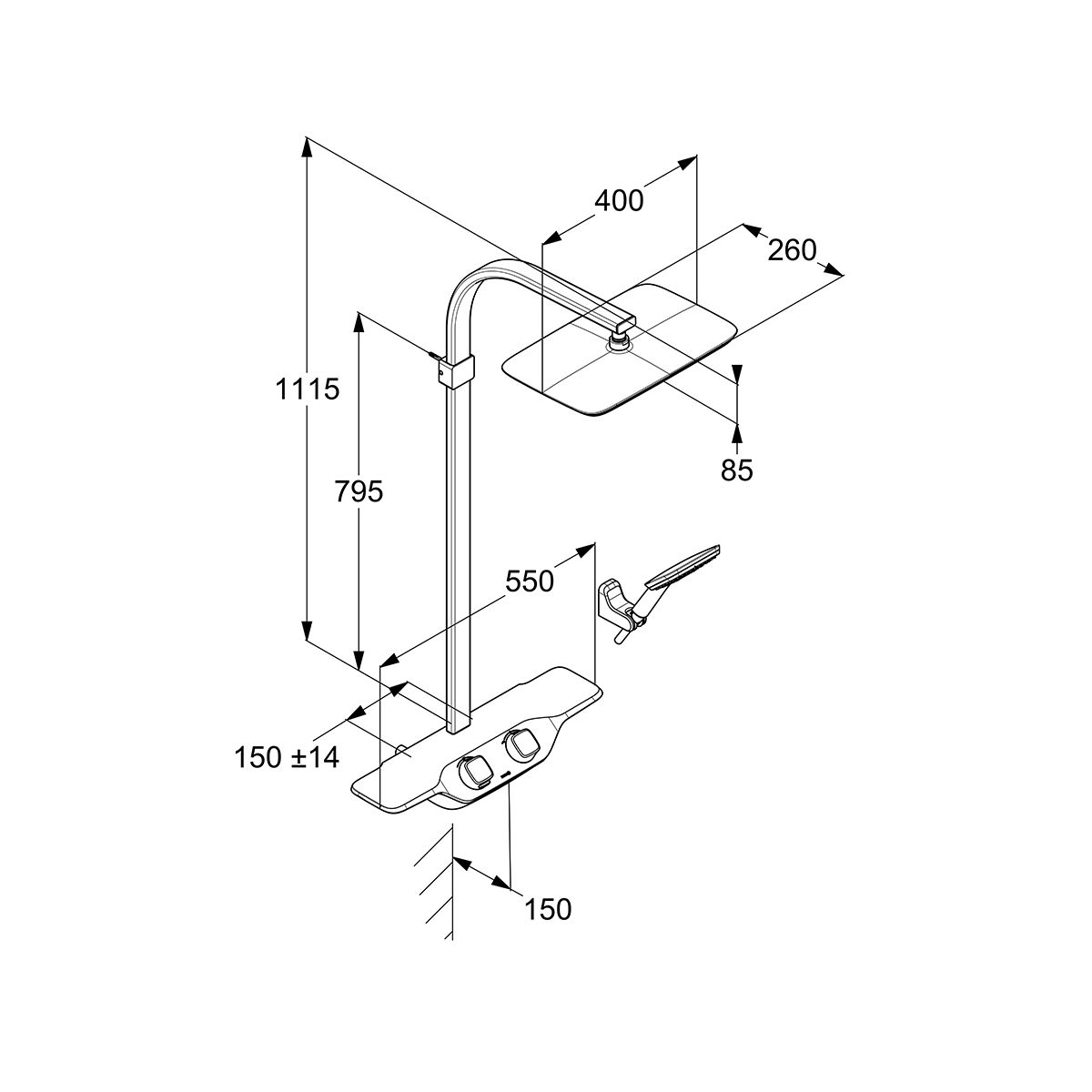 - Inbegriffen: Batterie mit Schalter, Duschkopf, Duschkopf, Duschschlauch, Duschstange