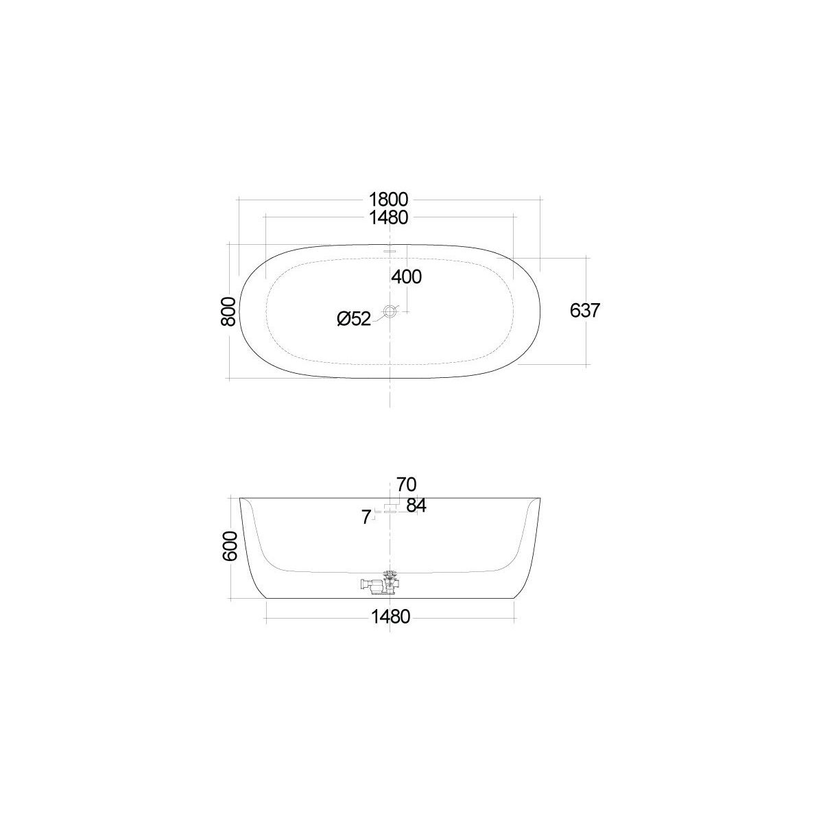 Kludi Elin O Freistehende Badewanne 180x80 cm oval weiß 52BF0143