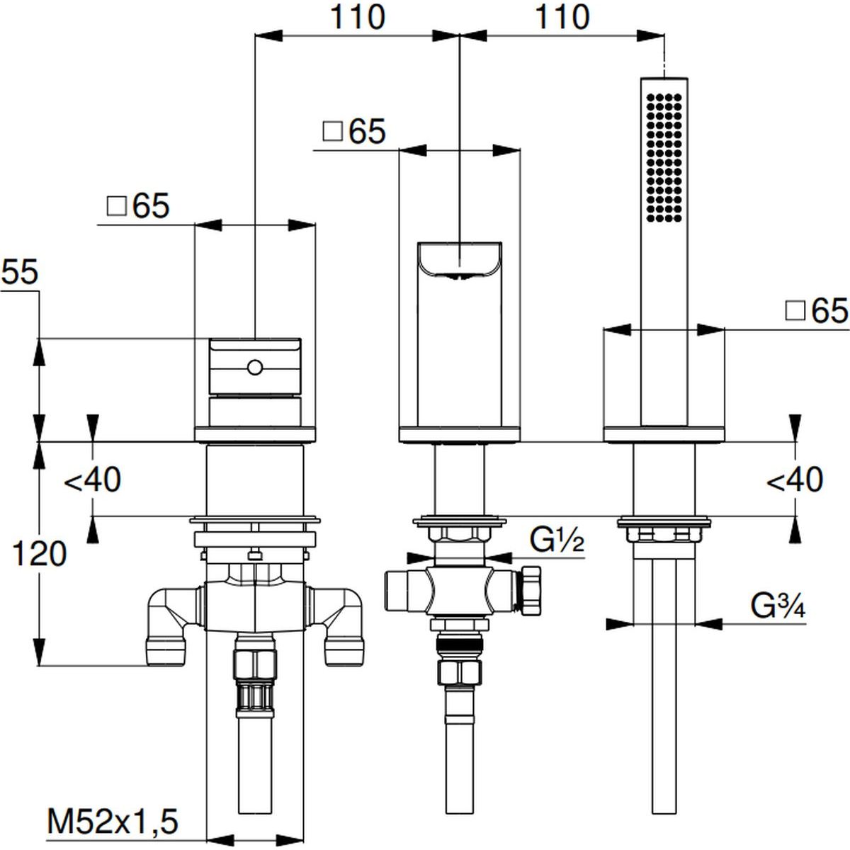 - Stehende Montage mit drei Öffnungen