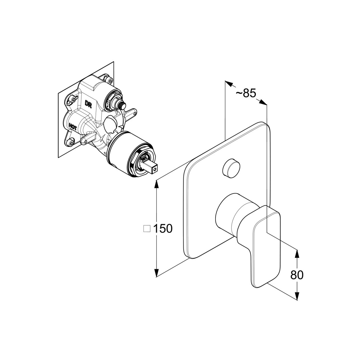 Eine moderne Armatur mit einem äußerst interessanten Design. Das Produkt ist für die Unterputzmontage über der Badewanne oder in der Duschkabine vorgesehen. Die Armatur ist mit einem Begrenzer für den Warmwasserfluss ausgestattet, sodass Sie den Verbrauch leicht kontrollieren können. Dank ihres außergewöhnlichen Designs verleiht die Armatur Ihrem Badezimmer Charakter.
