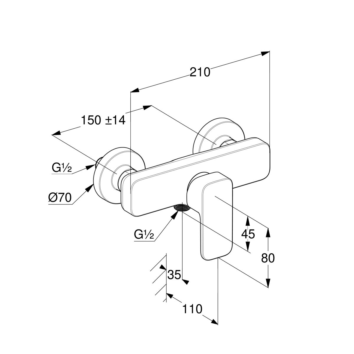 - Exzentrische Anschlüsse G 1/2 x G 3/4