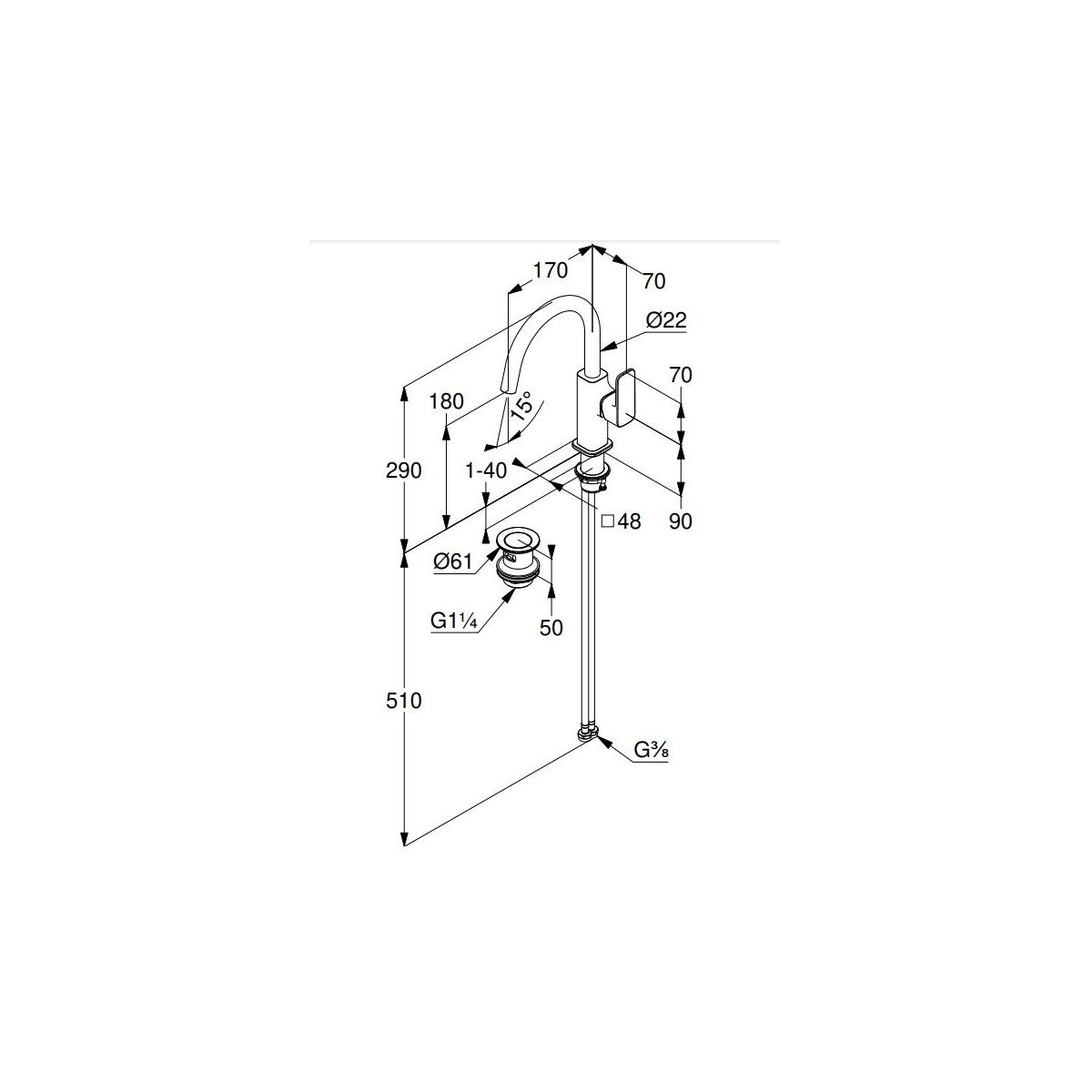 - Auslaufhöhe 180 mm