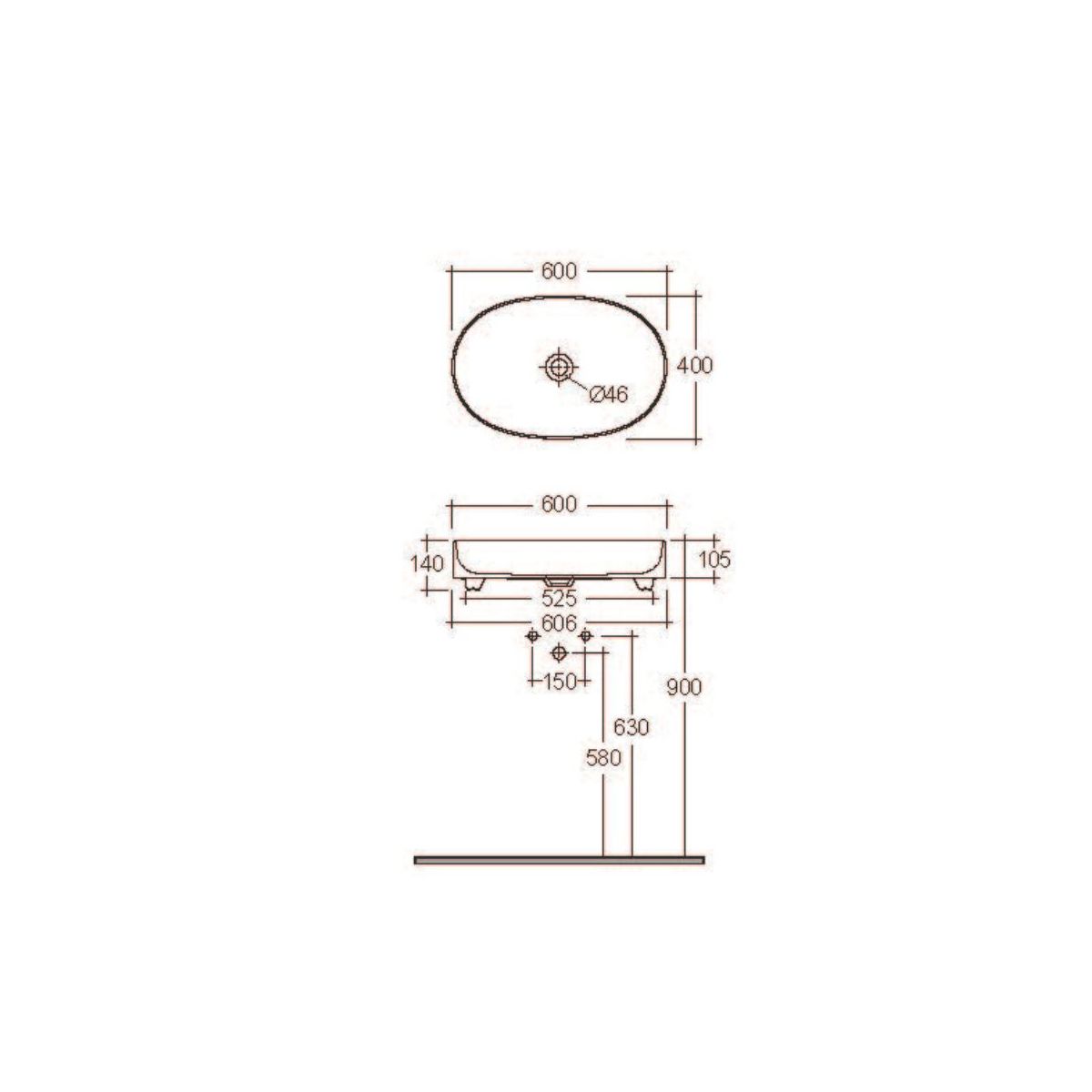 Kludi Resa O Waschbecken mit Ablaufstopfen 60x40 cm oval Aufsatzwaschbecken weiß 58CW2053