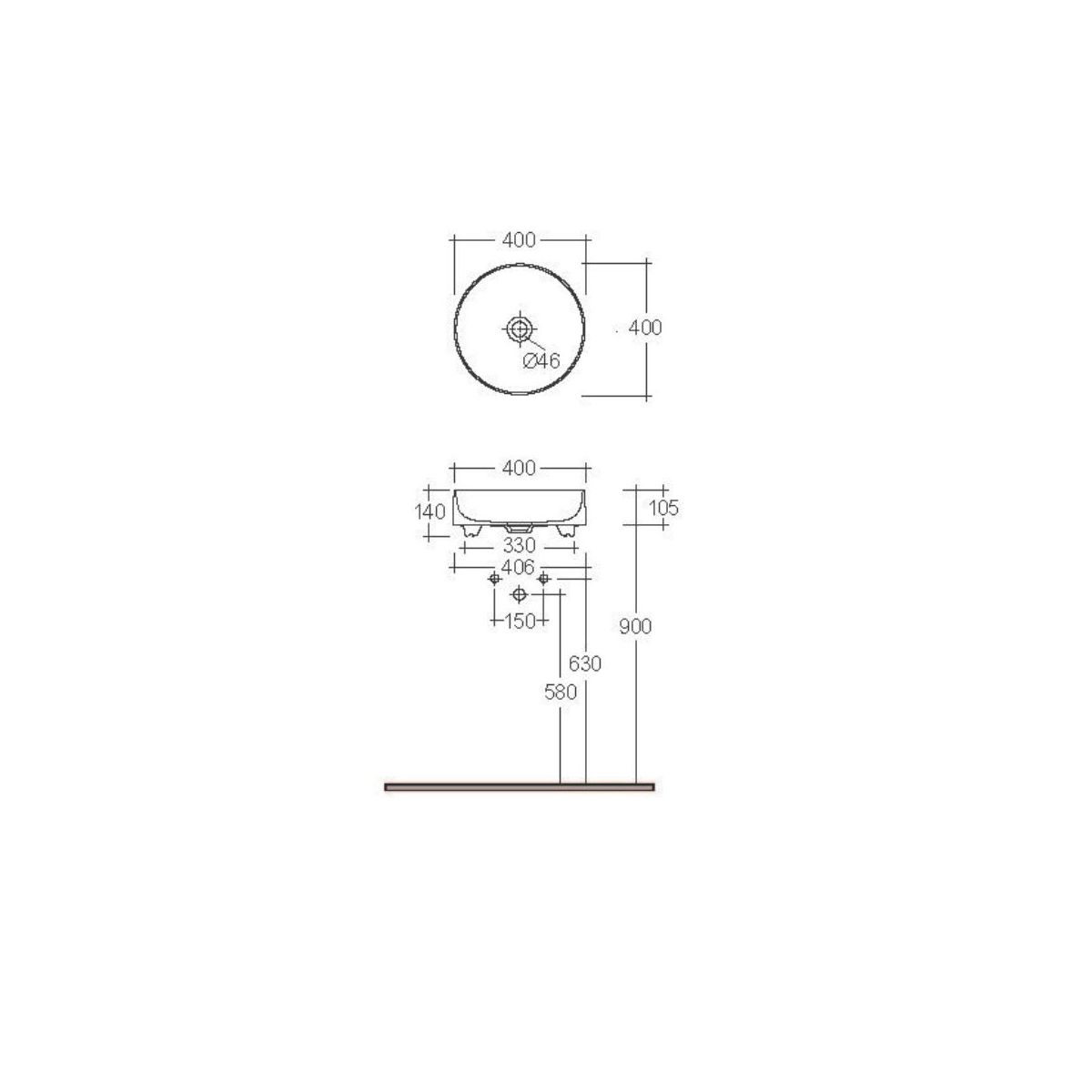 Kludi Resa R Waschbecken mit Ablaufstopfen 40x40 cm rund Aufsatzwaschbecken weiß 58CW1053