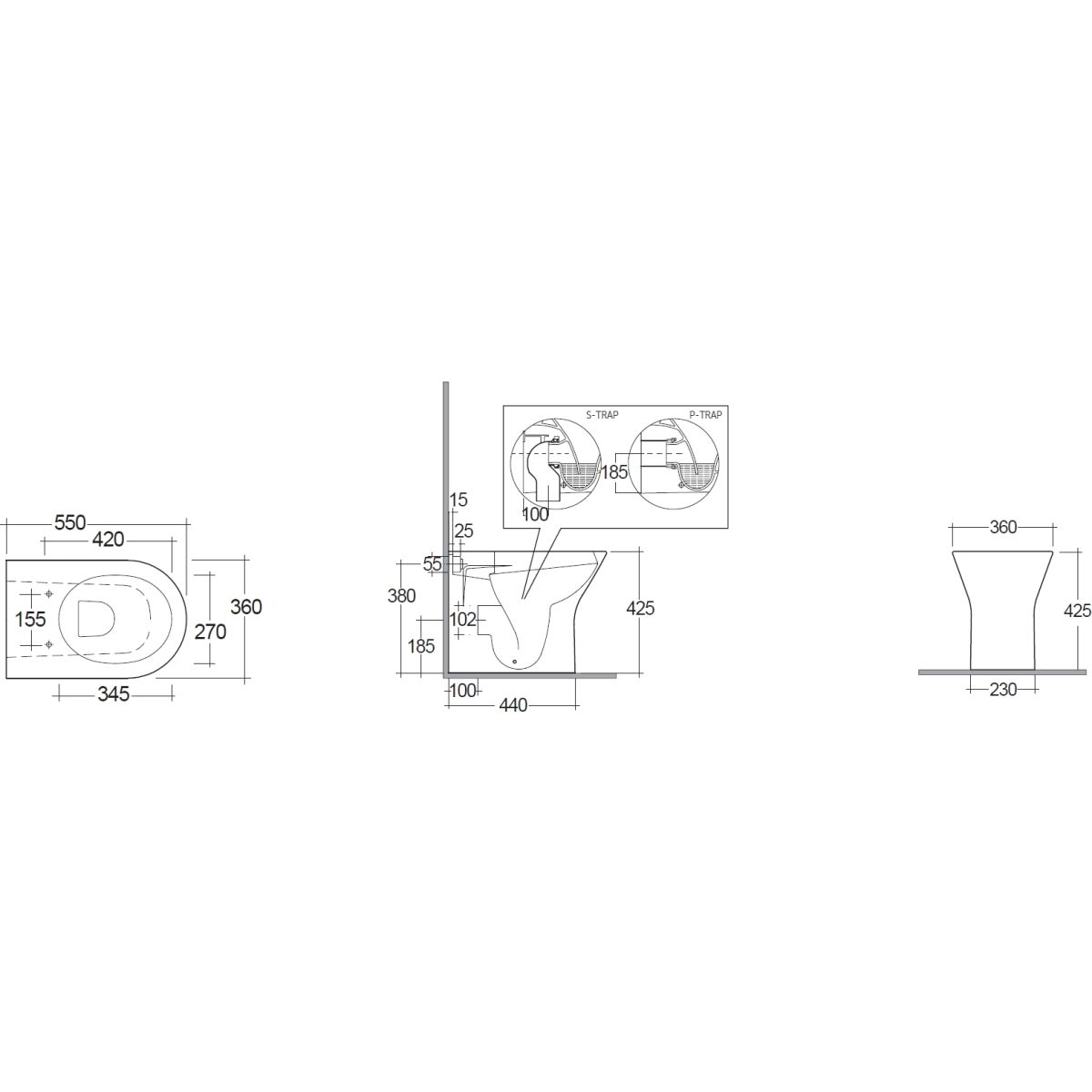 - Spiralflush – das Wasser zirkuliert spiralförmig über die gesamte Oberfläche der Toilettenschüssel, was für einen leisen Betrieb und Wassereinsparungen sorgt