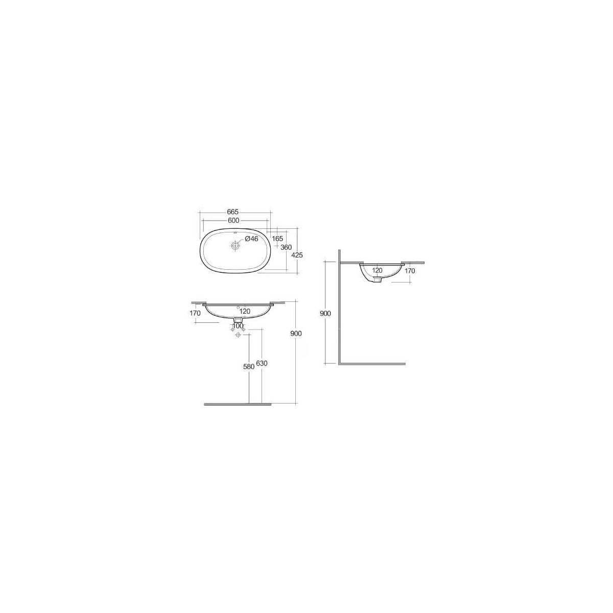 Kludi Resa Waschbecken 60x36 cm oval Unterbauwaschbecken weiß 59W0443